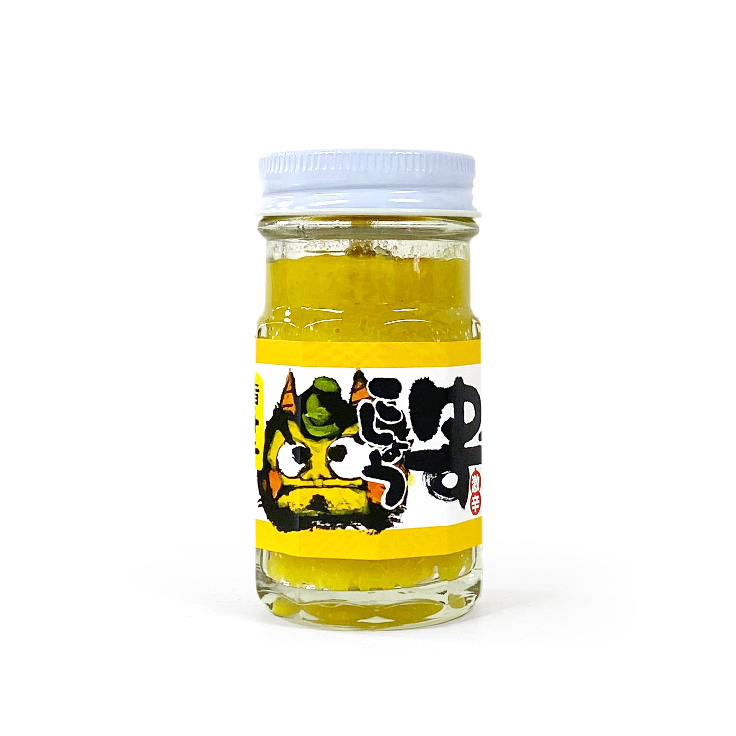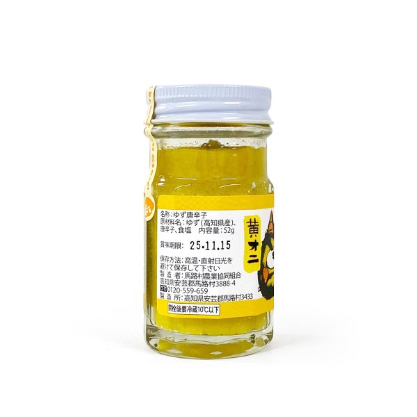 馬路村農協利用有機栽培的香氣四溢柚子,在新鮮的狀態下進行加工,將柚子皮粗略地磨碎,以更好地釋放香氣;然後再加入完全成熟的黃色辣椒和鹽,比青鬼柚子胡椒醬更辣!