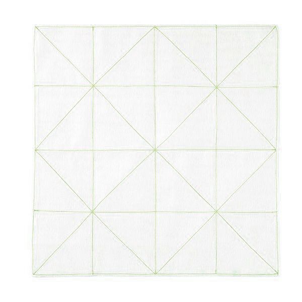 布巾上的彩色刺繡針法名叫「八方•末広」,寓意八方來的祝福,充滿好運和美好的祝願,希望幸運降臨在每一個家庭中。